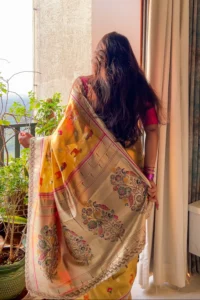 Designed to move gracefully with every step, this saree adapts beautifully to your silhouette, enhancing natural elegance while maintaining effortless comfort.